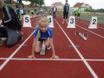 Fabienne Sämisch (w9) stellte sich der Konkurrenz im Dreikampf und im 600m Lauf. Für ihre Ergebnisse von 9,16s(50m)/2,96m(weit)/ 21,50m(Ball) im Dreikampf standen 874 Punkte (PB) und Rang 6 am Ende zu Buche. Besonders machte sie aber im 600m Lauf auf sich aufmerksam. Am Anfang unter den Führenden, musste sie das Tempo wegen Schmerzen im Oberschenkel reduzieren und fiel zurück. Auf der Zielgeraden biss das zierliche Mädchen dann aber die Zähne zusammen, überholte kurz vor der Ziellinie noch eine Konkurrentin und kam mit PB von 2:27,13 Minuten ins Ziel. Auch wenn sie die Sympathien der Zuschauer gewonnen hatte, für einen Podestplatz reichte es leider nicht.