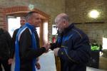 Das ließ er sich nicht nehmen! Der Aderstedter Bürgermeister Mike Franzelius bestand vor dem Start des Neujahrlaufes auf „sein“ Gruppenbild mit allen Teilnehmern. Den Wunsch erfüllten die 79 Starter natürlich gerne und reihten sich vor der Festscheune diszipliniert auf. Ungeachtet aller Vorbereitungen die so eine Laufveranstaltung mit sich bringt, hatte Franzelius bereits die fünfminütige Erwärmung gestemmt und die Ungeduldigen somit auf Betriebstemperatur gebracht. Bei angenehmen Lauftemperaturen standen dann alle Starter über eins und sechs Kilometer zappelig an der Startlinie. „Die Kinder laufen ihren Kilometer links, dann links und nochmal links!“, so der Bürgermeister, der sich auch für den erlösenden Startschuss bereitgestellt hatte. Los ging es, und noch mit den gesprochenen Worten im Ohr, liefen die Knirpse nach dem zweiten Links auch gleich das dritte Links, ohne den weisenden Streckenposten je gesehen zu haben und kürzten somit die Runde ab. Nur zwei Insider liefen wirklich einen Kilometer und kamen etwas verdutzt und ohne Verfolger ins Ziel. Die Aufregung war aber schnell vergessen, denn am Ende gab es für alle Kinder nicht nur eine Medaille, auch ein kleines Präsent durfte jeder mit nach Hause nehmen.
