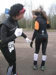 Sylvia Köhn erinnerte sich gut an die Strecke, war es nun genau zwei Jahre her, dass sie dort ihren allerersten Wettkampf mit den Bode-Runners bestritt. Auf den Test hatte Lutz Klauß seinen Schützling gut vorbereitet: „Bis jetzt war alles Spaß. Heute wird gebissen! Heute gehen wir an die Grenze!“ Seinem Trainer widerspricht man nicht, also folgte Köhn Schritt für Schritt ihrem Tempomacher. Und der Plan ging auf! Klauß staunte nicht schlecht, als Köhn auf der letzten Runde locker an ihm vorbeizog. Eine Top-Zeit und der erste Platz in der W30 waren ihr sicher. Renate Liedtke schaffte es in der W60 ebenfalls auf das Siegertreppchen. Zusammen mit Andreas Otto bereitet sie sich auf den Staffelmarathon in Hamburg vor.