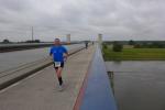 Sie konnten sogar Sachsen-Anhalts Sportminister Holger Stahlknecht und Wolmirstedts Bürgermeister Martin Stichnoth begeistern. Wer von den beiden den Finger am Abzug der Startpistole hatte, war nicht genau zu erkennen. Gemeinsam schickten sie die 88 Teilnehmer auf die 30-Kilometer-Distanz, unter ihnen auch sechs Läufer der Gaensefurther Sportbewegung. Auf unbekanntem Terrain ging es zunächst auf einem mittelalterlichen Pflasterweg durch das Wäldchen „Küchenhorn“. Über holprige Wiesenwege hinweg, stand dann auch schon der Anstieg zum Mittellandkanal an. Mit Rückenwind ging es nun immer geradeaus am Kanal entlang. Von links grüßte der „Kalimadscharo“ aus Zielitz und bald war auch die gigantische Trogbrücke passiert. An der Niegripper Doppelschleuse ging es allen Bode-Runners noch richtig gut und Jens-Uwe Börner, wieder einmal als Paparazzi unterwegs, erhaschte sogar ein Foto vom Führenden Frank Schauer. Der Deutsche Marathonmeister vom Sportclub Magdeburg war bereits wieder auf dem Rückweg und sollte am Ende nach nur 01:49:35 Stunden seinen Sieg über die 30 Kilometer-Distanz feiern. Ein gutes Training für seinen nächsten Marathon in Frankfurt, die Bode-Runners werden auf jeden Fall wieder die Daumen drücken!